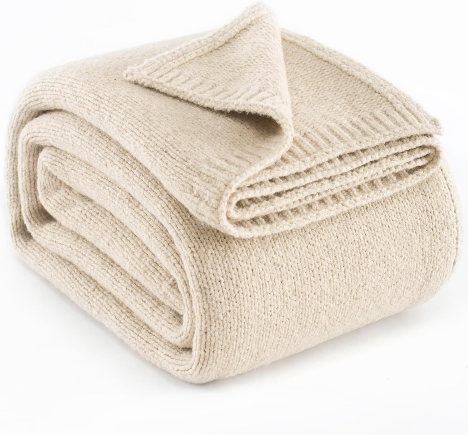 A cozy wool-blend throw blanket with fringe ends, ideal for layering on a bed or wrapping up on the couch for chilly evenings.